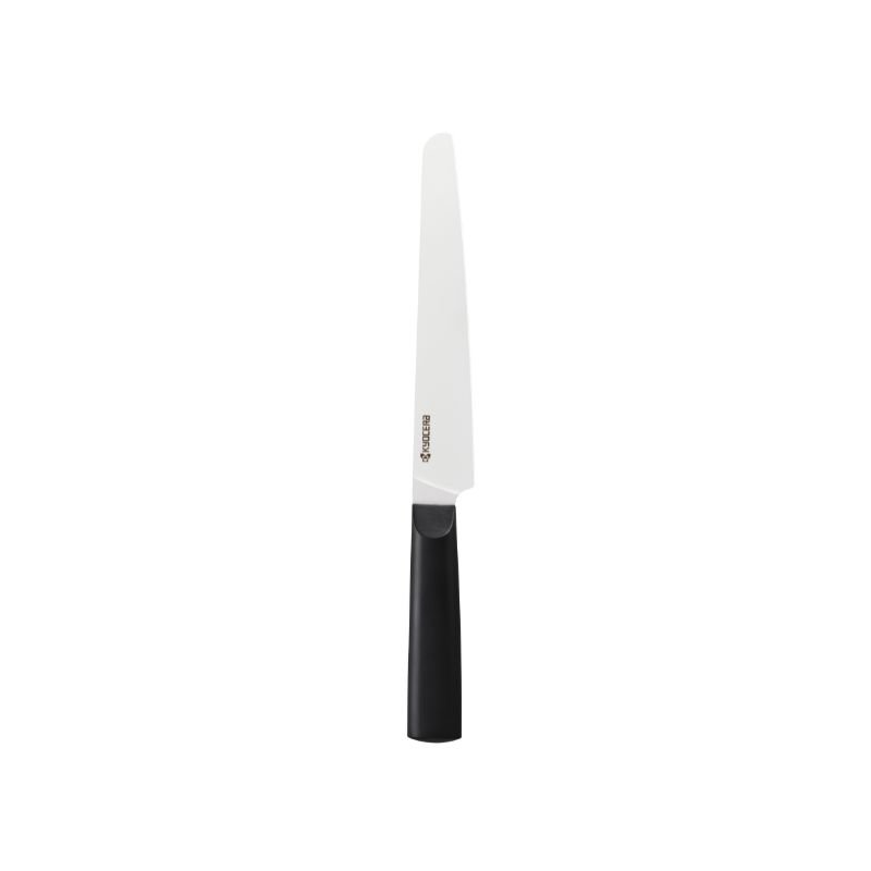 Le trancheur/pain de la gamme CHOWA de Kyocera est équipé d'une nouvelle céramique brevetée, offrant une résistance accrue aux chocs et torsions. Son design épuré et moderne s'associe à une lame en céramique inaltérable, préservant la qualité des aliments lors de la découpe du pain. Les lames réaffûtables garantissent une performance durable.